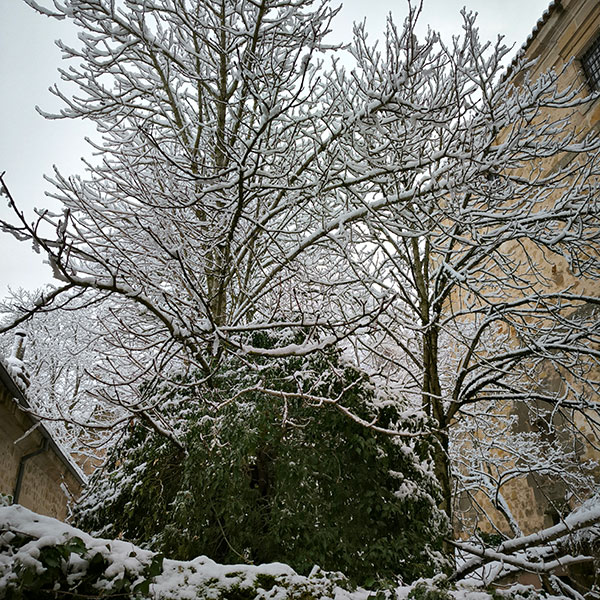 Es nieve de la buena, de la que se derretirá poco a poco con la lluvia y el sol, sin apenas hielo, deshaciéndose sobre los campos, nieve que te hace pensar en cosas distintas a las cotidianas, cosas de la infancia y de un entorno simple y básicamente feliz, como esa sorpresa de que, al abrir una puerta o una ventana, el mundo ha cambiado, y se queda quieto, para que lo puedas contemplar a tu gusto.